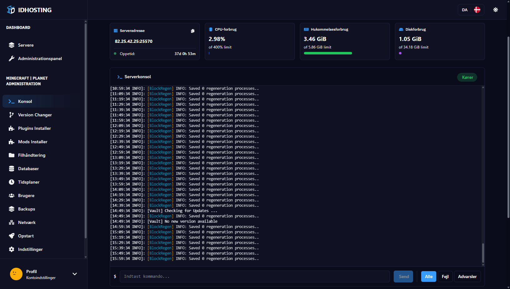 Administrer din server nemt med vores avancerede kontrolpanel